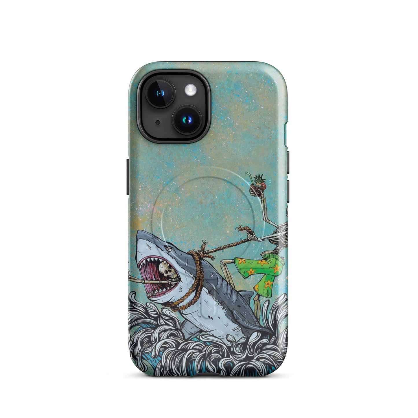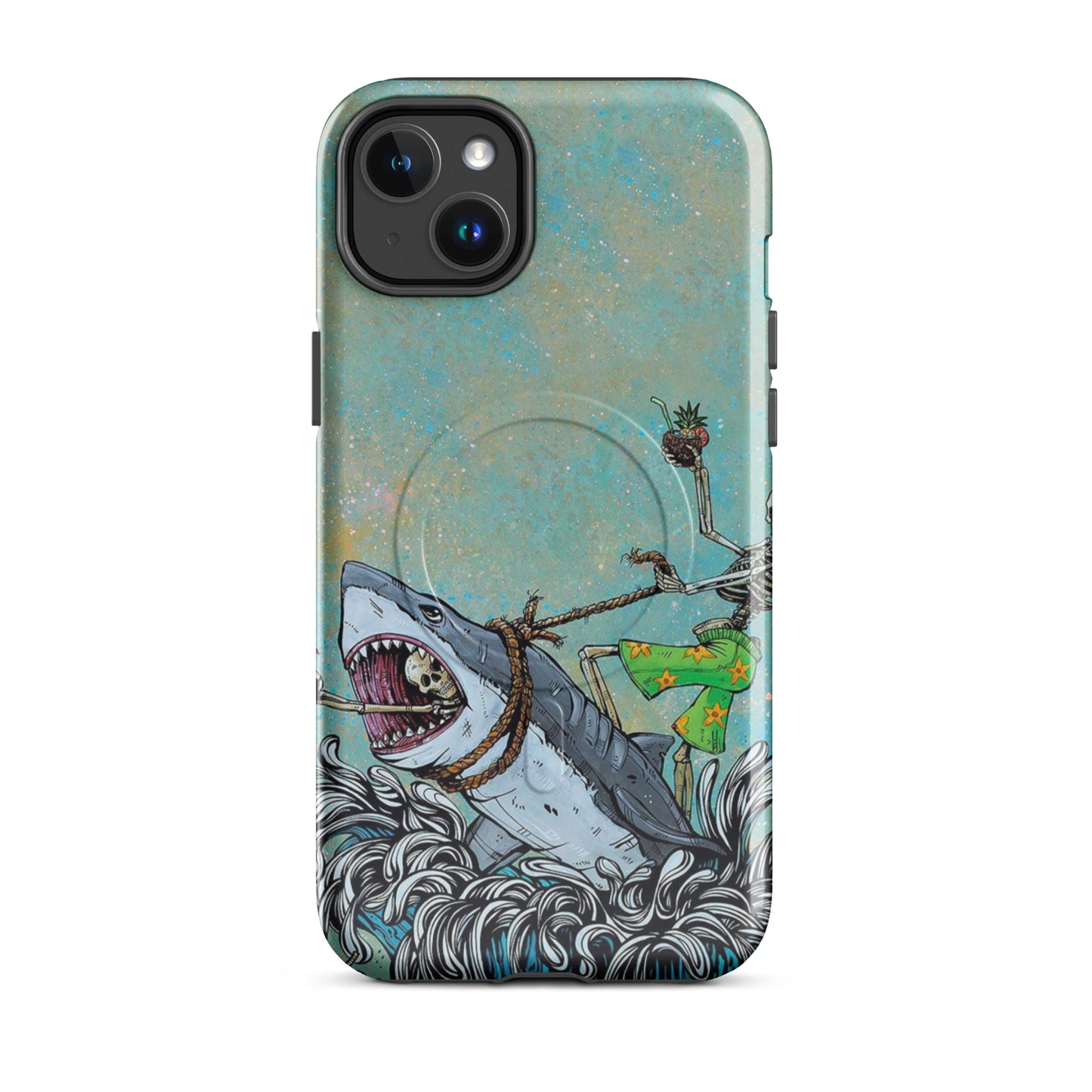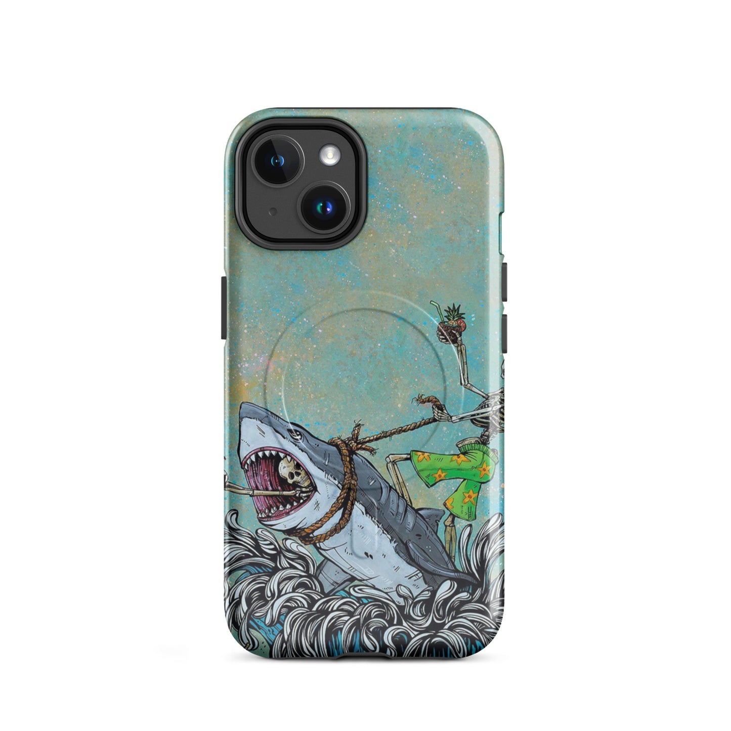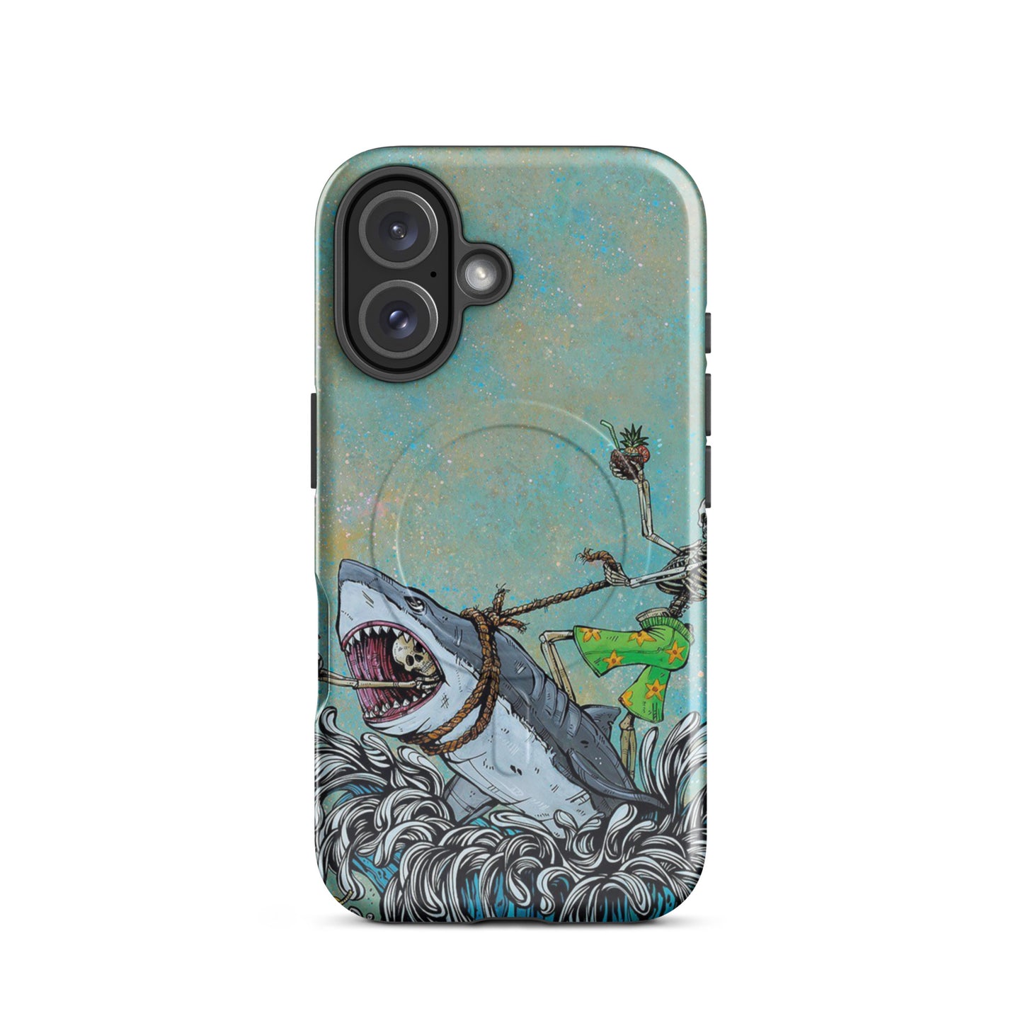 Tropical Skeleton Surfing Shark MagSafe Tough Case for iPhone