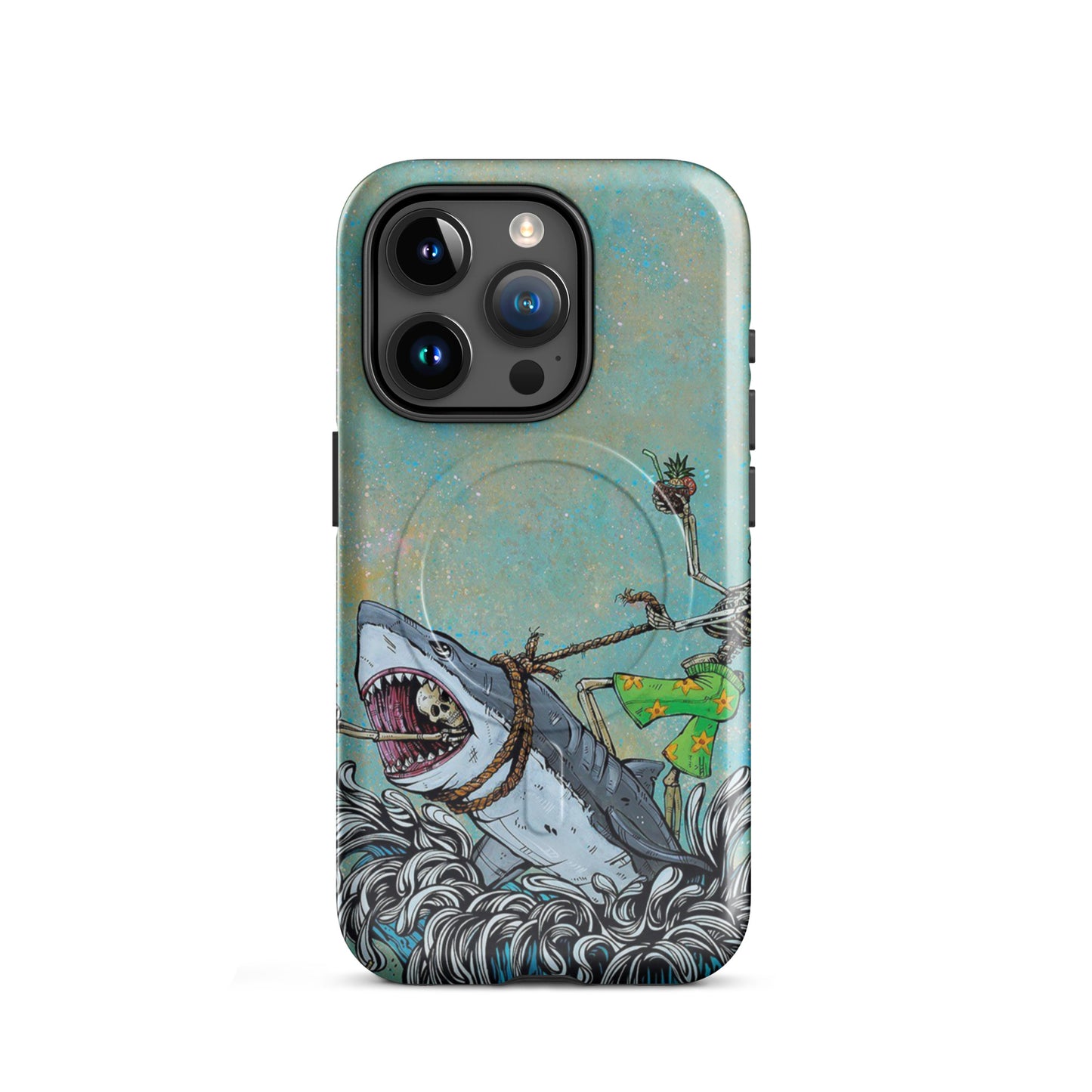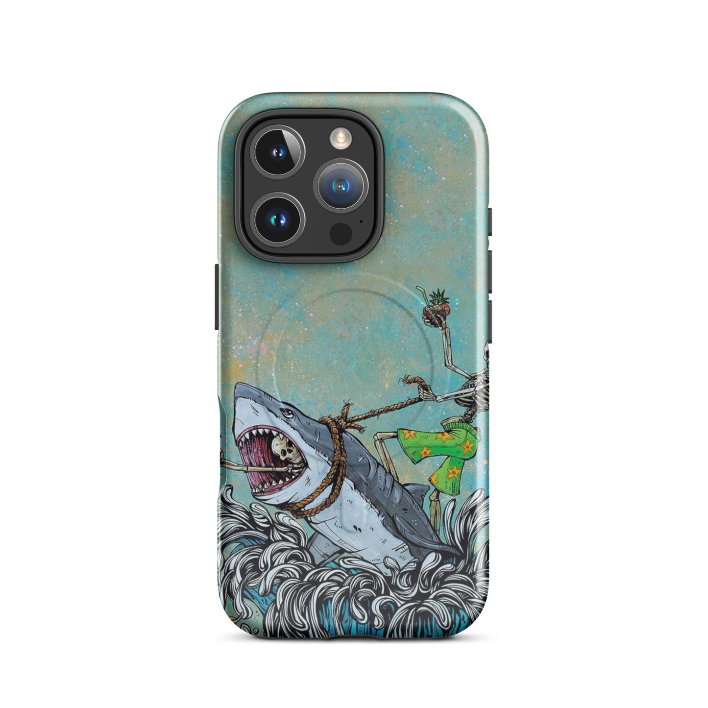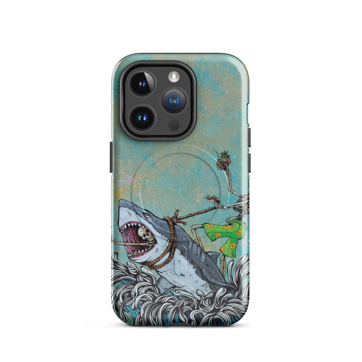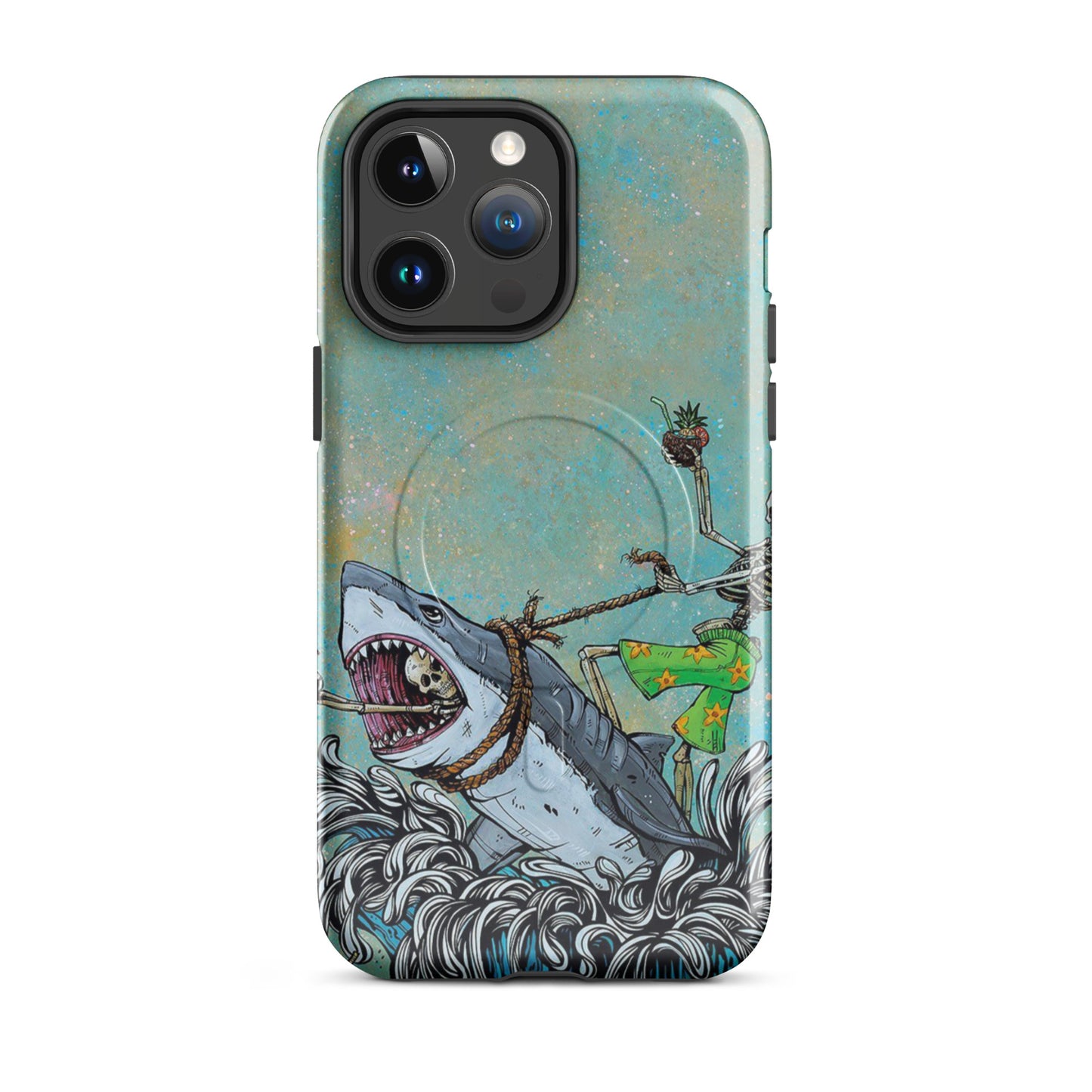 Tropical Skeleton Surfing Shark MagSafe Tough Case for iPhone